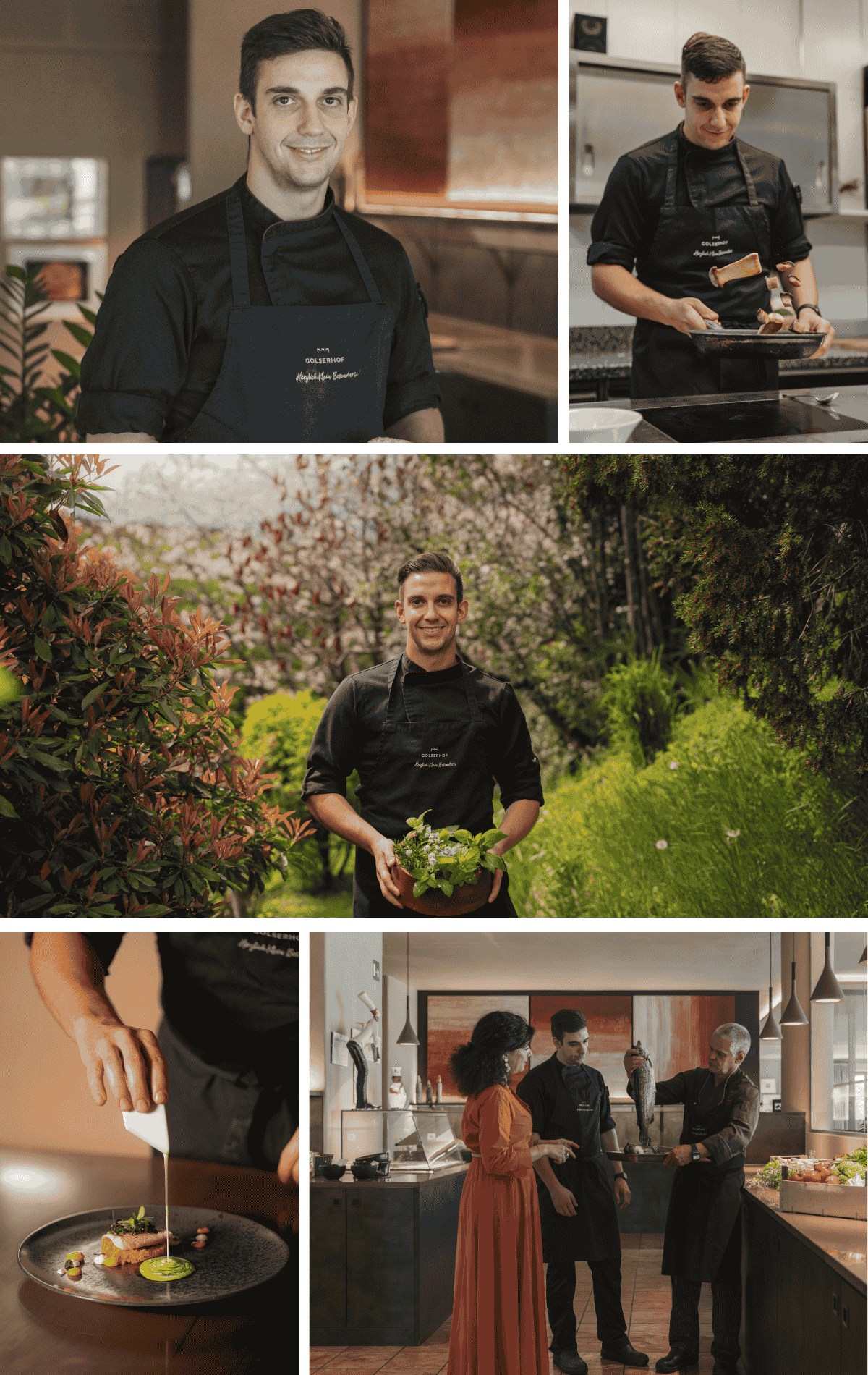 “Iniziai a lavorare nella cucina dell’hotel nel lontano 1993, quando Hiltrud – a soli 21 anni! – prese in mano le redini dell’albergo. A selezionarmi fu la nonna Hildegard! Ricordo bene com’erano la vecchia sala da pranzo e la cucina. In tutti questi anni sono cambiate tantissime cose: siamo passati dai semplici e gustosi menù a 3 stelle alla cucina raffinata e sofisticata dell’odierno hotel di lusso con la sua proposta a 4 stelle superior. Forse è anche per questo che sono rimasto così a lungo: perché bolliva sempre qualcosa in pentola! Scherzi a parte: qui al Golserhof si respira un’atmosfera meravigliosamente umana e ho potuto dare spazio alla mia passione – praticamente durante tutta la mia carriera! I miei piatti hanno deliziato gli ospiti nel corso di tre decenni – ed è stato proprio questo a infondermi la voglia di continuare.